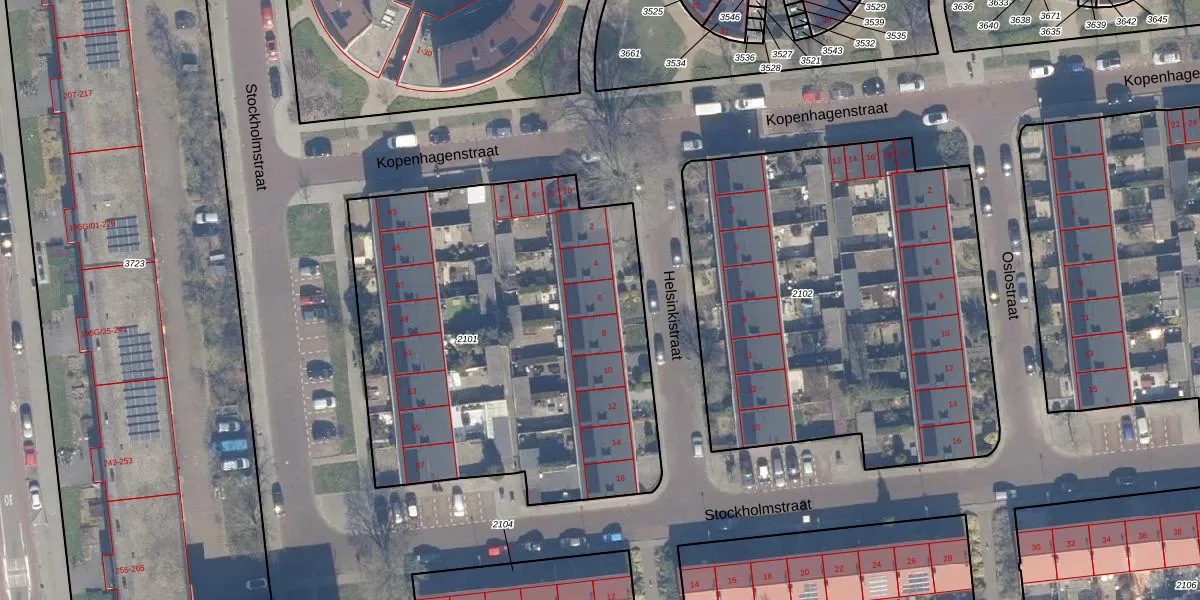 Het perceel waarop Helsinkistraat 6 staat heeft een oppervlakte van 2400 m². Dit is een zeer groot perceel. De perceeloppervlakte wordt geregistreerd door het Kadaster. Gedetailleerde informatie over de maten van dit perceel kunt u vinden in het rapport Kadastrale kaart met maatvoering van Helsinkistraat 6.