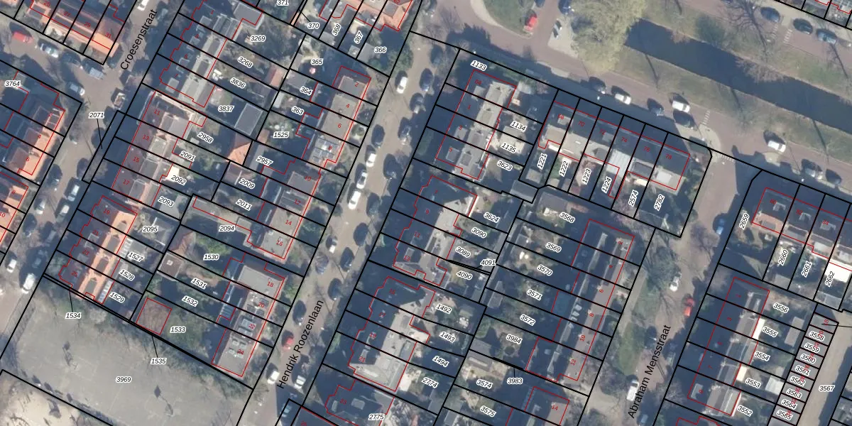 Gebruik de zoekbalk of klik op een perceel voor informatie over de adressen binnen dit perceel.