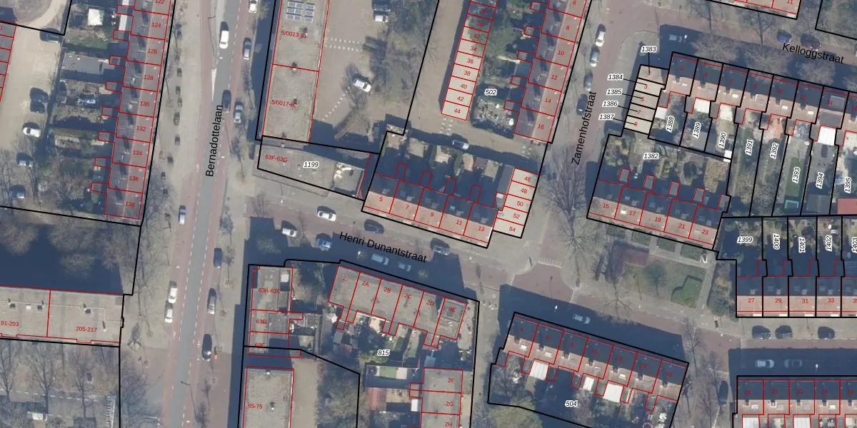 Het perceel waarop Henri Dunantstraat 9 staat heeft een oppervlakte van 2376 m². Dit is een zeer groot perceel. De perceeloppervlakte wordt geregistreerd door het Kadaster. Gedetailleerde informatie over de maten van dit perceel kunt u vinden in het rapport Kadastrale kaart met maatvoering van Henri Dunantstraat 9.