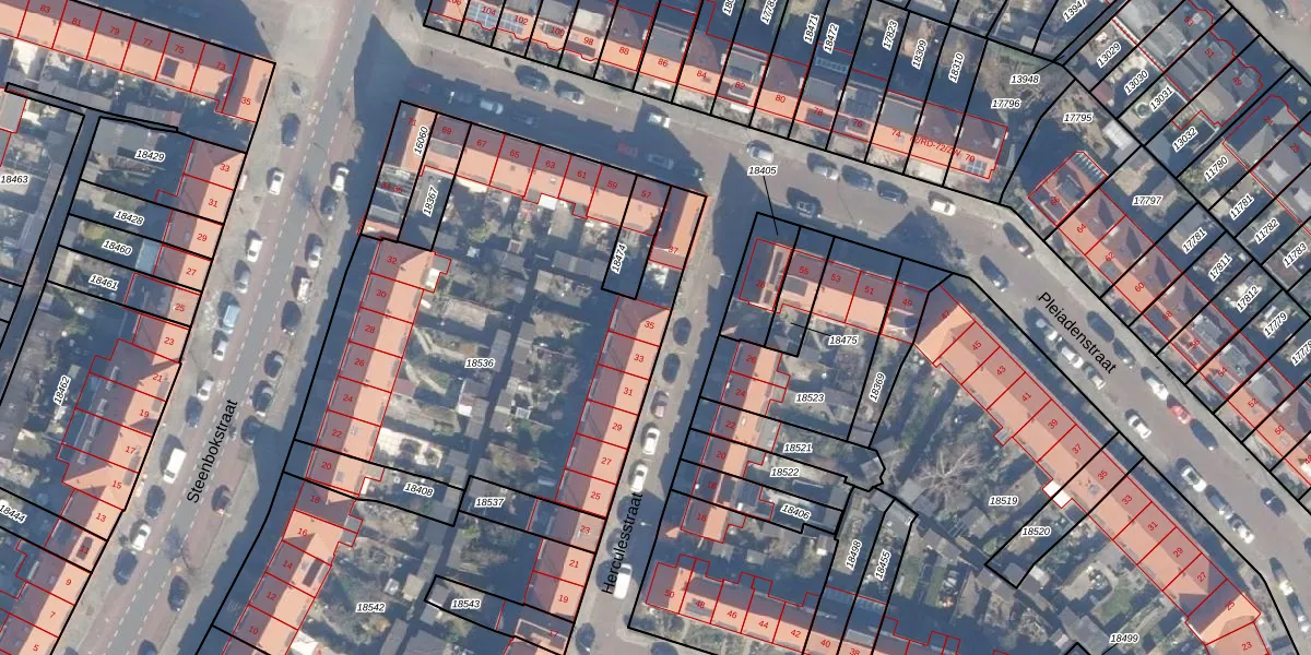 Het perceel waarop Herculesstraat 35 staat heeft een oppervlakte van 2240 m². Dit is een zeer groot perceel. De perceeloppervlakte wordt geregistreerd door het Kadaster. Gedetailleerde informatie over de maten van dit perceel kunt u vinden in het rapport Kadastrale kaart met maatvoering van Herculesstraat 35.
