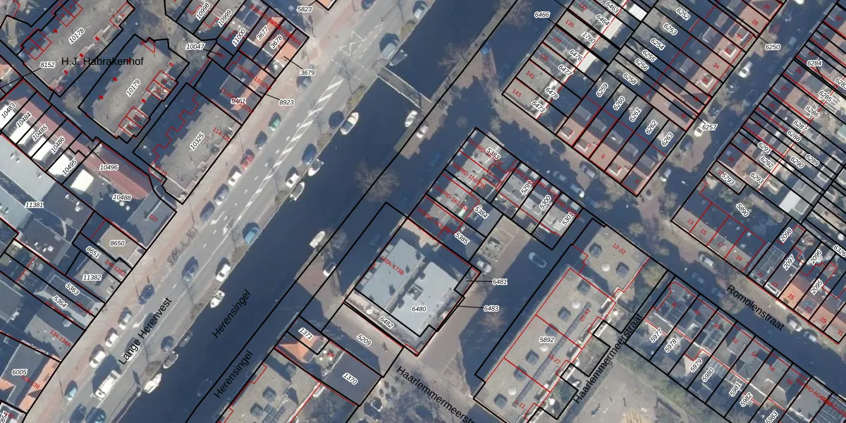 Herensingel 163-ZW is gelegen op kadastraal perceel HLM01E5385. Deze kadastrale aanduiding is uniek en wordt gebruikt door het Kadaster om eigendomsrechten en andere zakelijke rechten vast te leggen. Het perceel maakt onderdeel uit van de kadastrale gemeente Haarlem.
