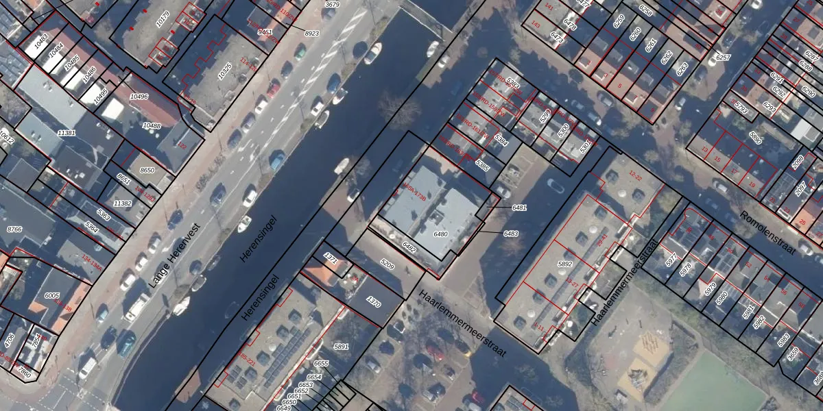 Het adres ligt op het perceel HLM01-E-6480, dat zich in de kadastrale gemeente Haarlem bevindt. De oppervlakte van het perceel is 425 m². Dat is groter dan gemiddeld in Haarlem, waar de gemiddelde perceeloppervlakte op 328,17 m² ligt. De grootste perceeloppervlakte in de kadastrale gemeente is 13,9 ha. De kleinste oppervlakte bedraagt 0 m². Op het perceel zijn 16 adressen aanwezig. In de Basisregistratie Kadaster (BRK) werden de grenzen van het perceel geregistreerd op 12-01-2005.