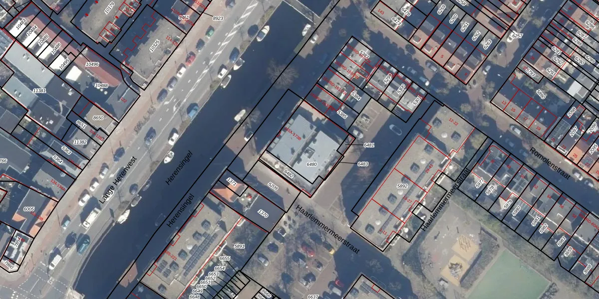 Het adres ligt op het perceel HLM01-E-6480, dat zich in de kadastrale gemeente Haarlem bevindt. De oppervlakte van het perceel is 425 m². Dat is groter dan gemiddeld in Haarlem, waar de gemiddelde perceeloppervlakte op 328,17 m² ligt. De grootste perceeloppervlakte in de kadastrale gemeente is 13,9 ha. De kleinste oppervlakte bedraagt 0 m². Op het perceel zijn 16 adressen aanwezig. De huidige grenzen van het perceel zijn digitaal in de Basisregistratie Kadaster (BRK) geregistreerd op 12-01-2005.