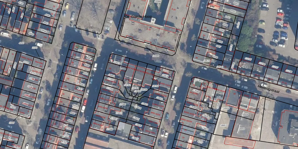 Hertzogstraat 8-ZW is gelegen op kadastraal perceel STN01B18758. Deze kadastrale aanduiding is uniek en wordt gebruikt door het Kadaster om eigendomsrechten en andere zakelijke rechten vast te leggen. Het perceel maakt onderdeel uit van de kadastrale gemeente Schoten.