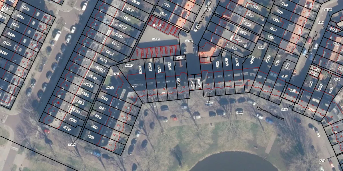 Het perceel waarop Heussensstraat 66 staat heeft een oppervlakte van 153 m². Dit is een middelgroot perceel. De perceeloppervlakte wordt geregistreerd door het Kadaster. Gedetailleerde informatie over de maten van dit perceel kunt u vinden in het rapport Kadastrale kaart met maatvoering van Heussensstraat 66.