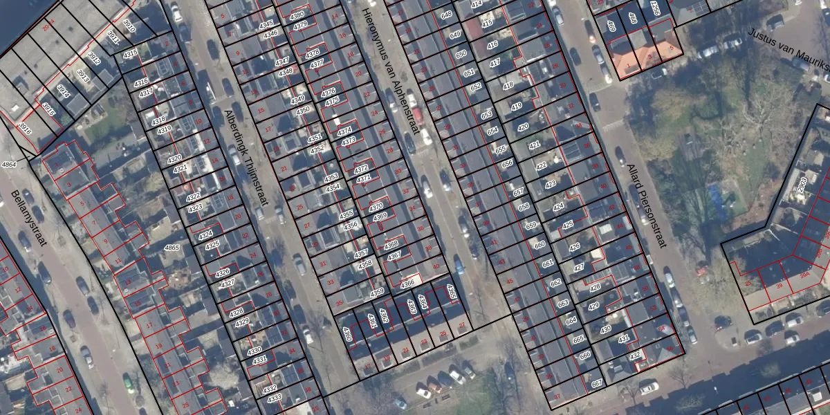 Hieronymus van Alphenstraat 34 is gelegen op kadastraal perceel HLM01E4369. Deze kadastrale aanduiding is uniek en wordt gebruikt door het Kadaster om eigendomsrechten en andere zakelijke rechten vast te leggen. Het perceel maakt onderdeel uit van de kadastrale gemeente Haarlem.