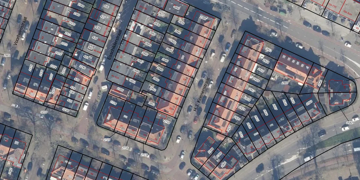 Het perceel waarop H.J. Koenenstraat 16 staat heeft een oppervlakte van 143 m². Dit is een middelgroot perceel. De perceeloppervlakte wordt geregistreerd door het Kadaster. Gedetailleerde informatie over de maten van dit perceel kunt u vinden in het rapport Kadastrale kaart met maatvoering van H.J. Koenenstraat 16.