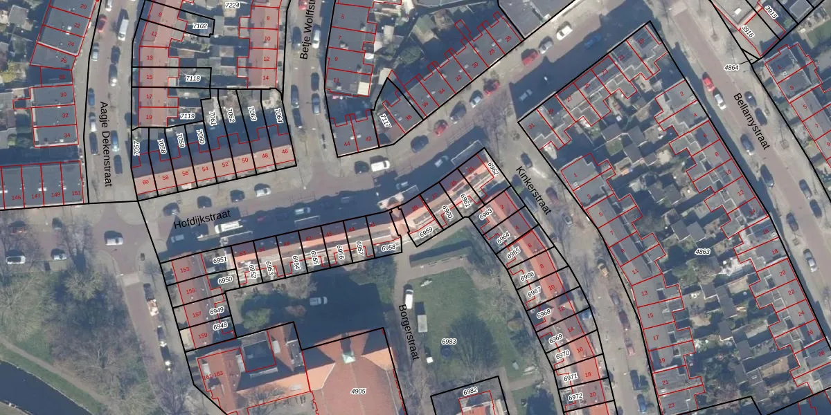 Gebruik de zoekbalk of klik op een perceel voor informatie over de adressen binnen dit perceel.