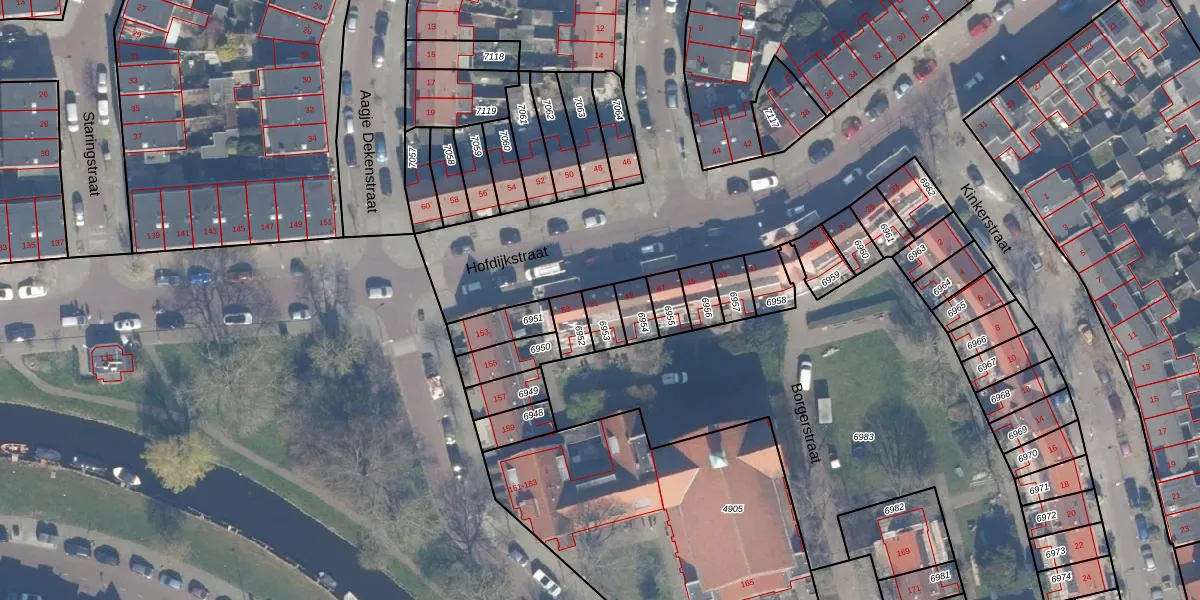 Gebruik de zoekbalk of klik op een perceel voor informatie over de adressen binnen dit perceel.