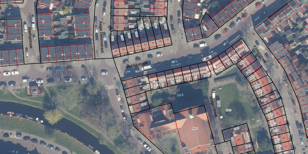 Gebruik de zoekbalk of klik op een perceel voor informatie over de adressen binnen dit perceel.