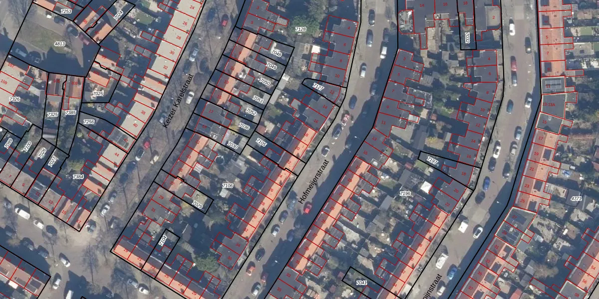 Het perceel waarop Hofmeijerstraat 20 staat heeft een oppervlakte van 1763 m². Dit is een zeer groot perceel. De perceeloppervlakte wordt geregistreerd door het Kadaster. Gedetailleerde informatie over de maten van dit perceel kunt u vinden in het rapport Kadastrale kaart met maatvoering van Hofmeijerstraat 20.