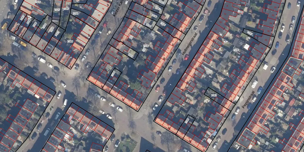Het perceel waarop Hofmeijerstraat 34 staat heeft een oppervlakte van 1870 m². Dit is een zeer groot perceel. De perceeloppervlakte wordt geregistreerd door het Kadaster. Gedetailleerde informatie over de maten van dit perceel kunt u vinden in het rapport Kadastrale kaart met maatvoering van Hofmeijerstraat 34.