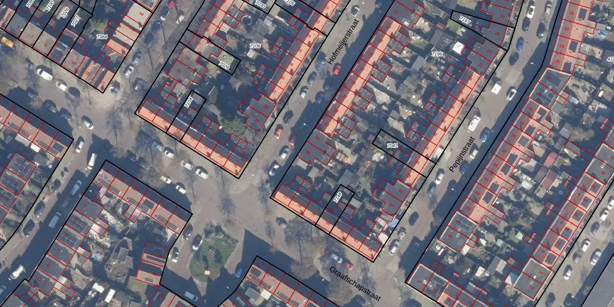 Het perceel waarop Hofmeijerstraat 35 staat heeft een oppervlakte van 4970 m². Dit is een zeer groot perceel. De perceeloppervlakte wordt geregistreerd door het Kadaster. Gedetailleerde informatie over de maten van dit perceel kunt u vinden in het rapport Kadastrale kaart met maatvoering van Hofmeijerstraat 35.