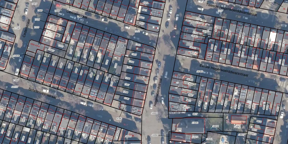 Gebruik de zoekbalk of klik op een perceel voor informatie over de adressen binnen dit perceel.