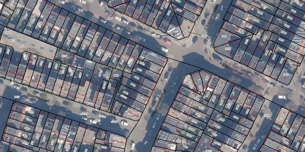 Het perceel waarop Hogerwoerdstraat 55 staat heeft een oppervlakte van 98 m². Dit is een klein perceel. De perceeloppervlakte wordt geregistreerd door het Kadaster. Gedetailleerde informatie over de maten van dit perceel kunt u vinden in het rapport Kadastrale kaart met maatvoering van Hogerwoerdstraat 55.