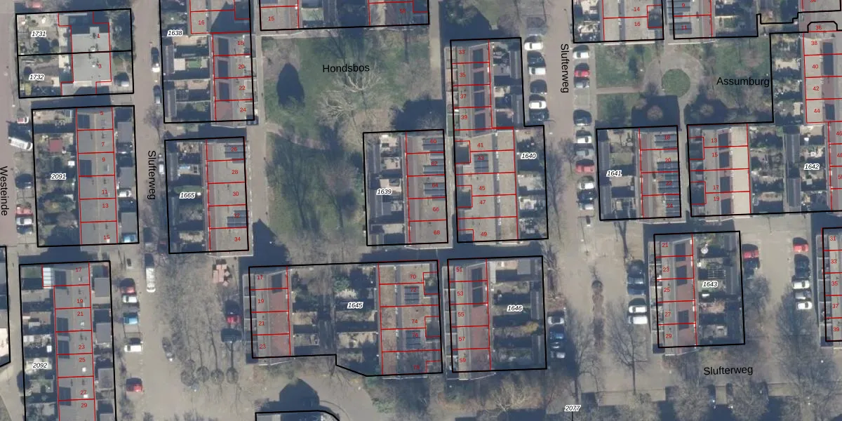 Het perceel waarop Hondsbos 66 staat heeft een oppervlakte van 510 m². Dit is een groot perceel. De perceeloppervlakte wordt geregistreerd door het Kadaster. Gedetailleerde informatie over de maten van dit perceel kunt u vinden in het rapport Kadastrale kaart met maatvoering van Hondsbos 66.