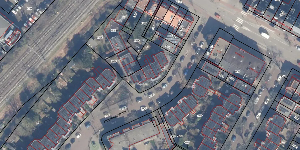 Hoofmanstraat 10 is gelegen op kadastraal perceel HLM01A5043. Deze kadastrale aanduiding is uniek en wordt gebruikt door het Kadaster om eigendomsrechten en andere zakelijke rechten vast te leggen. Het perceel maakt onderdeel uit van de kadastrale gemeente Haarlem.