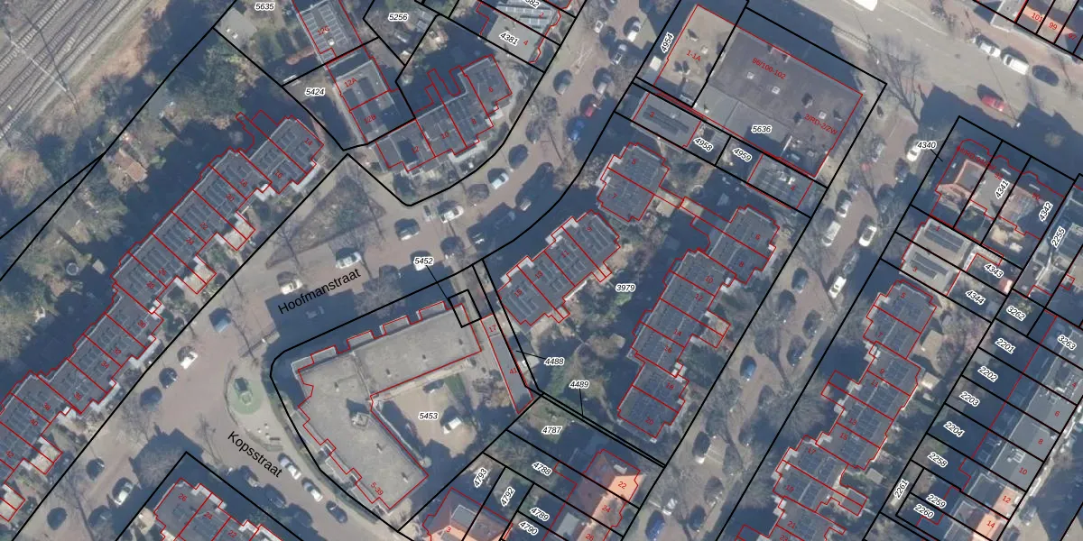 Het perceel waarop Hoofmanstraat 13 staat heeft een oppervlakte van 2160 m². Dit is een zeer groot perceel. De perceeloppervlakte wordt geregistreerd door het Kadaster. Gedetailleerde informatie over de maten van dit perceel kunt u vinden in het rapport Kadastrale kaart met maatvoering van Hoofmanstraat 13.