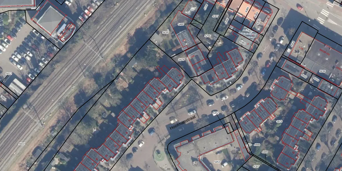 Hoofmanstraat 16 is gelegen op kadastraal perceel HLM01A5043. Deze kadastrale aanduiding is uniek en wordt gebruikt door het Kadaster om eigendomsrechten en andere zakelijke rechten vast te leggen. Het perceel maakt onderdeel uit van de kadastrale gemeente Haarlem.