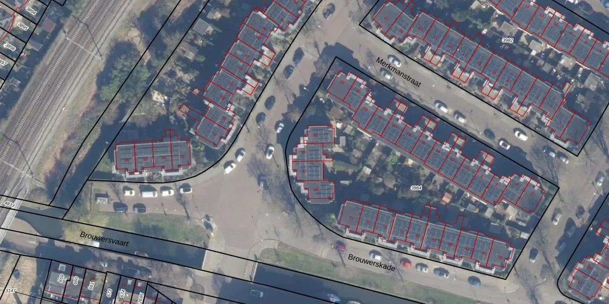 Het adres is gelegen op perceel 3984 in de sectie A en de kadastrale gemeente Haarlem. De kadastrale aanduiding is aldus HLM01-A-3984. De gemiddelde perceeloppervlakte in de kadastrale gemeente Haarlem is 328,19 m². Dit perceel is met zijn 3655 m² dus groter dan gemiddeld. Het grootste perceel in de kadastrale gemeente is 13,9 ha. Het kleinste perceel heeft een oppervlakte van 0 m². Op het perceel liggen in totaal 28 adressen. De huidige grenzen van het perceel zijn digitaal in de Basisregistratie Kadaster (BRK) geregistreerd op 16-08-2001.