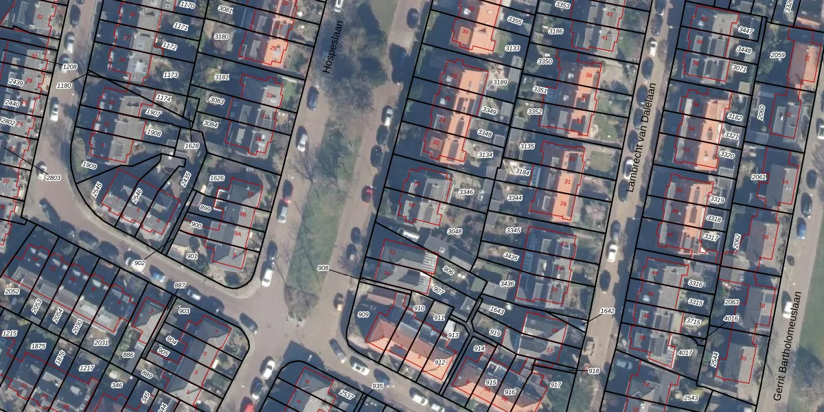 Gebruik de zoekbalk of klik op een perceel voor informatie over de adressen binnen dit perceel.