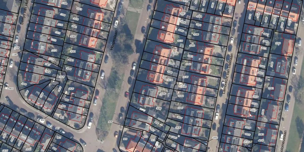 Het perceel waarop Hospeslaan 22 staat heeft een oppervlakte van 212 m². Dit is een middelgroot perceel. De perceeloppervlakte wordt geregistreerd door het Kadaster. Gedetailleerde informatie over de maten van dit perceel kunt u vinden in het rapport Kadastrale kaart met maatvoering van Hospeslaan 22.