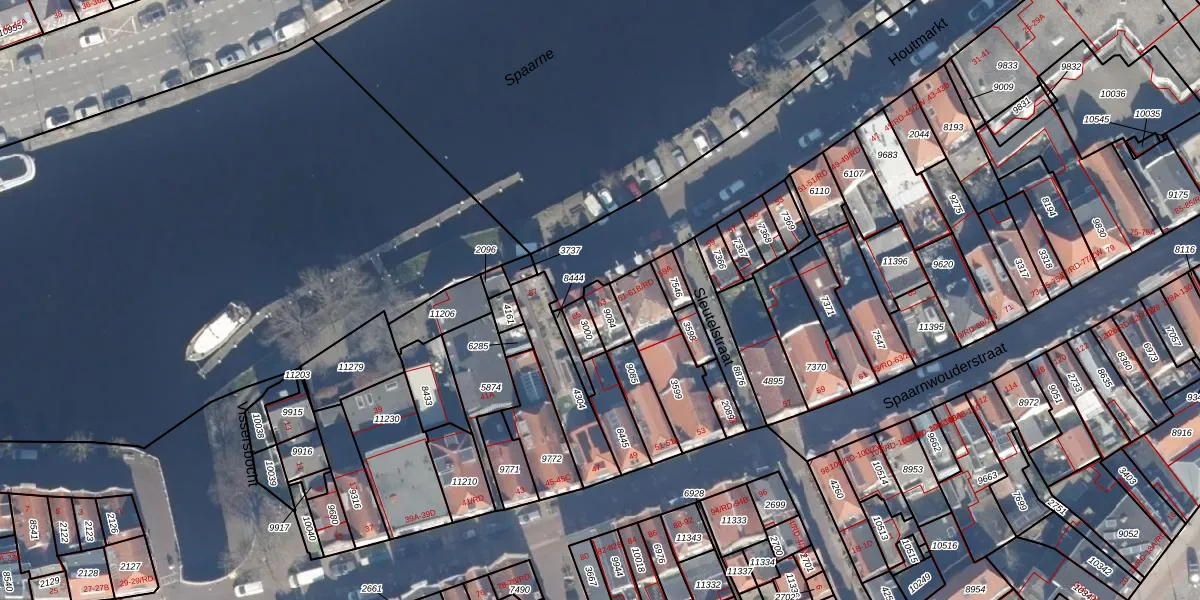 Het perceel waarop Houtmarkt 63 staat heeft een oppervlakte van 47 m². Dit is een klein perceel. De perceeloppervlakte wordt geregistreerd door het Kadaster. Gedetailleerde informatie over de maten van dit perceel kunt u vinden in het rapport Kadastrale kaart met maatvoering van Houtmarkt 63.