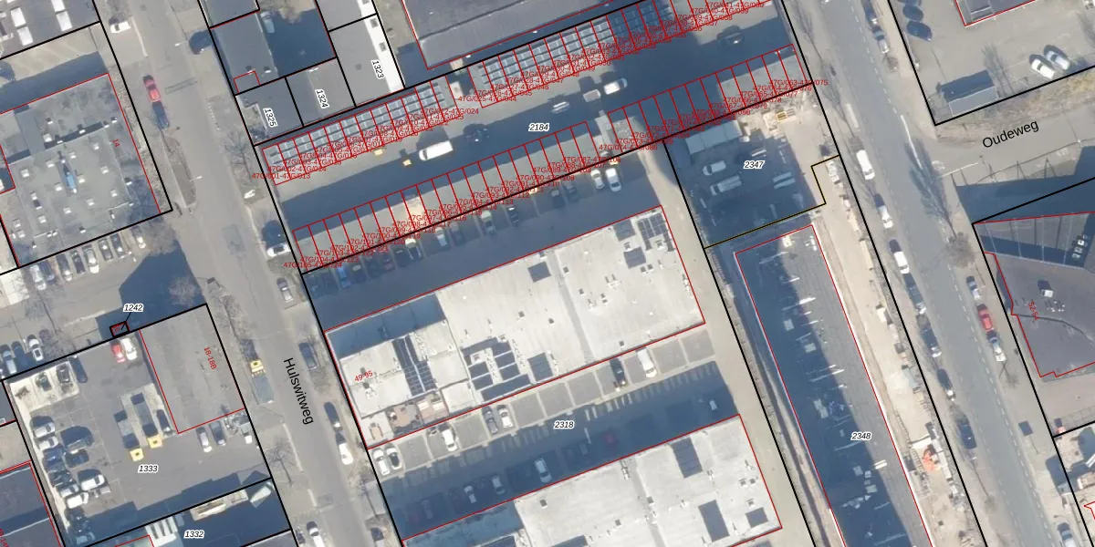 Hulswitweg 63 is gelegen op kadastraal perceel HLM02N2318. Deze kadastrale aanduiding is uniek en wordt gebruikt door het Kadaster om eigendomsrechten en andere zakelijke rechten vast te leggen. Het perceel maakt onderdeel uit van de kadastrale gemeente Haarlem.