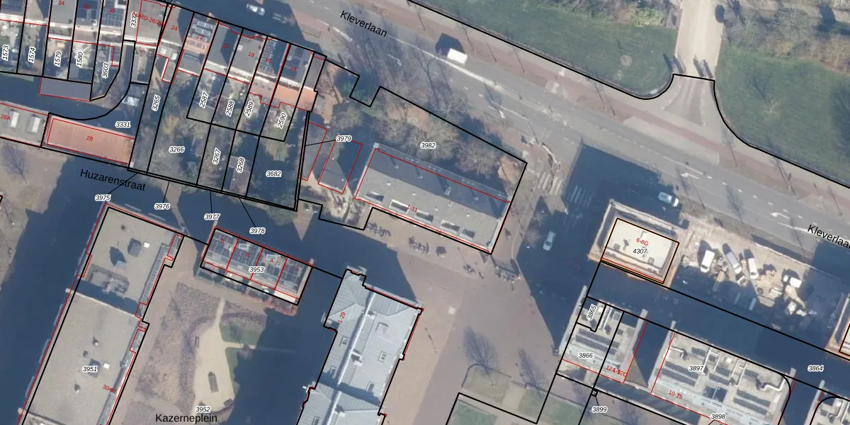 Huzarenstraat 1 is gelegen op kadastraal perceel HLM01G3982. Deze kadastrale aanduiding is uniek en wordt gebruikt door het Kadaster om eigendomsrechten en andere zakelijke rechten vast te leggen. Het perceel maakt onderdeel uit van de kadastrale gemeente Haarlem.