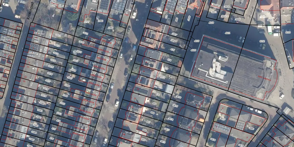 Gebruik de zoekbalk of klik op een perceel voor informatie over de adressen binnen dit perceel.