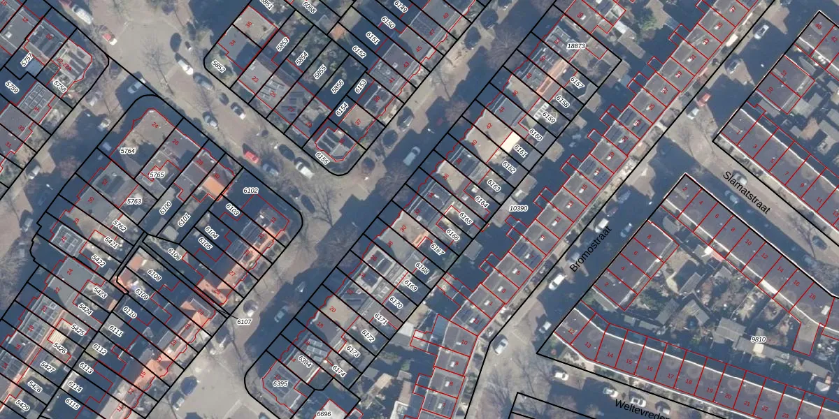 Gebruik de zoekbalk of klik op een perceel voor informatie over de adressen binnen dit perceel.
