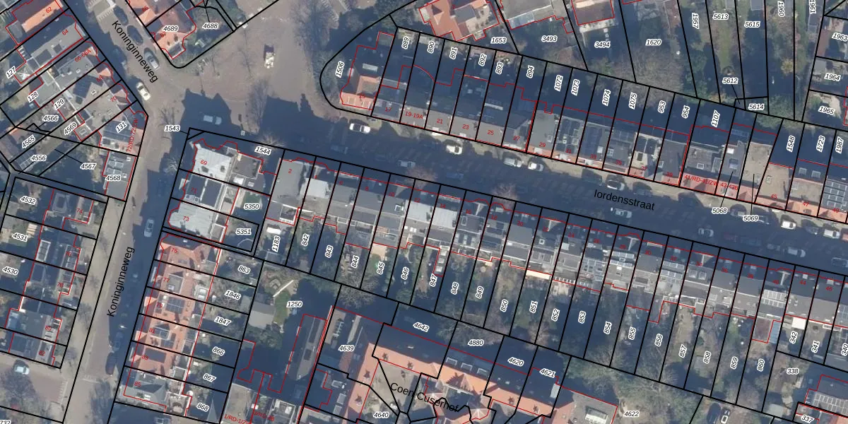 Het perceel waarop Iordensstraat 12 staat heeft een oppervlakte van 182 m². Dit is een middelgroot perceel. De perceeloppervlakte wordt geregistreerd door het Kadaster. Gedetailleerde informatie over de maten van dit perceel kunt u vinden in het rapport Kadastrale kaart met maatvoering van Iordensstraat 12.