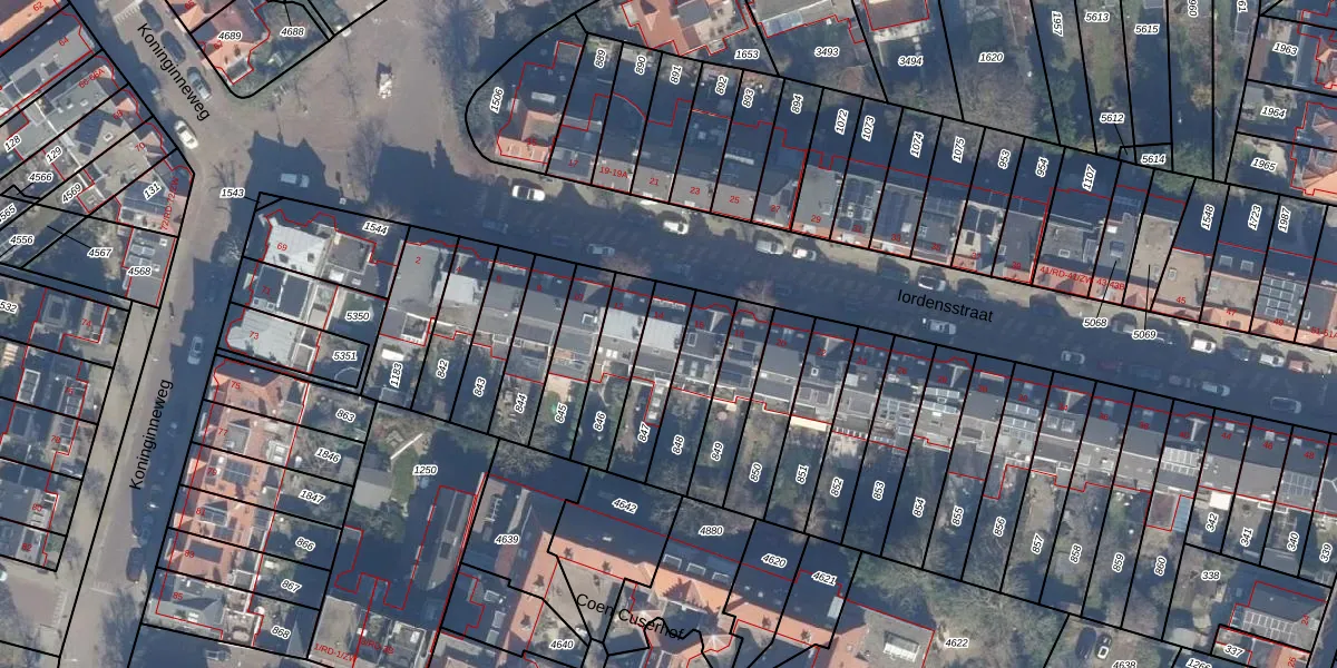 Het perceel waarop Iordensstraat 14 staat heeft een oppervlakte van 181 m². Dit is een middelgroot perceel. De perceeloppervlakte wordt geregistreerd door het Kadaster. Gedetailleerde informatie over de maten van dit perceel kunt u vinden in het rapport Kadastrale kaart met maatvoering van Iordensstraat 14.