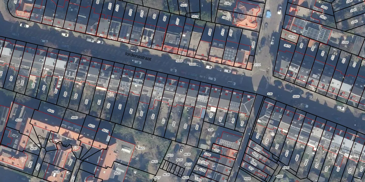 Het perceel waarop Iordensstraat 36 staat heeft een oppervlakte van 212 m². Dit is een middelgroot perceel. De perceeloppervlakte wordt geregistreerd door het Kadaster. Gedetailleerde informatie over de maten van dit perceel kunt u vinden in het rapport Kadastrale kaart met maatvoering van Iordensstraat 36.