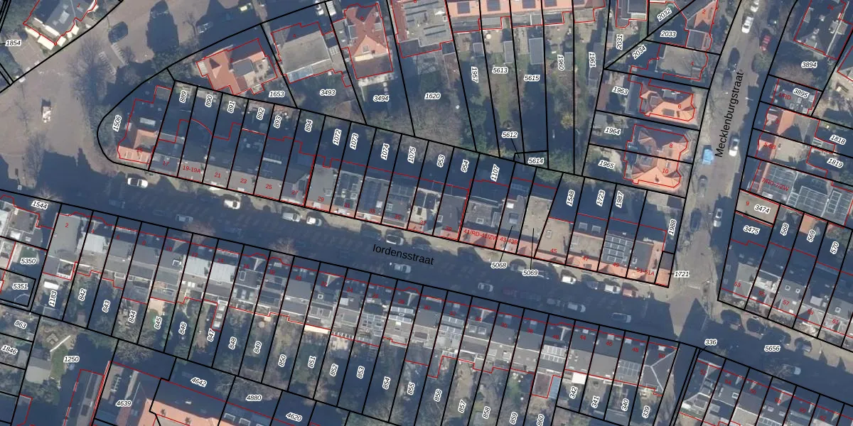 Het perceel waarop Iordensstraat 37 staat heeft een oppervlakte van 133 m². Dit is een middelgroot perceel. De perceeloppervlakte wordt geregistreerd door het Kadaster. Gedetailleerde informatie over de maten van dit perceel kunt u vinden in het rapport Kadastrale kaart met maatvoering van Iordensstraat 37.