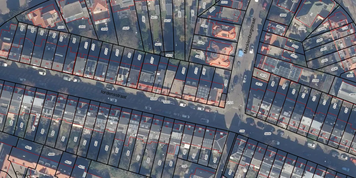 Het perceel waarop Iordensstraat 45 staat heeft een oppervlakte van 136 m². Dit is een middelgroot perceel. De perceeloppervlakte wordt geregistreerd door het Kadaster. Gedetailleerde informatie over de maten van dit perceel kunt u vinden in het rapport Kadastrale kaart met maatvoering van Iordensstraat 45.