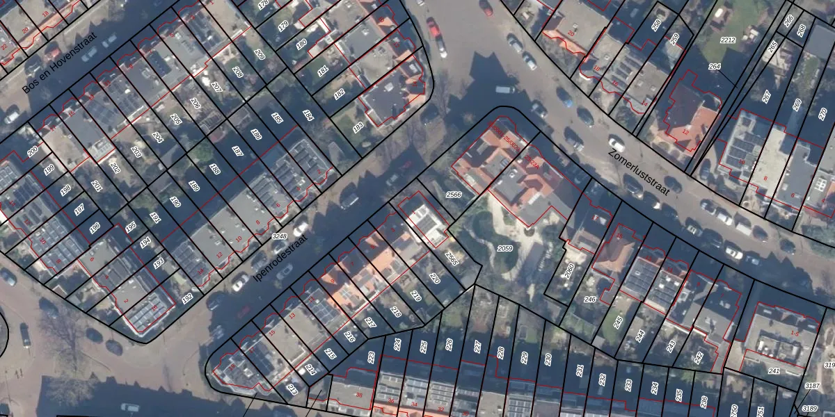 Gebruik de zoekbalk of klik op een perceel voor informatie over de adressen binnen dit perceel.