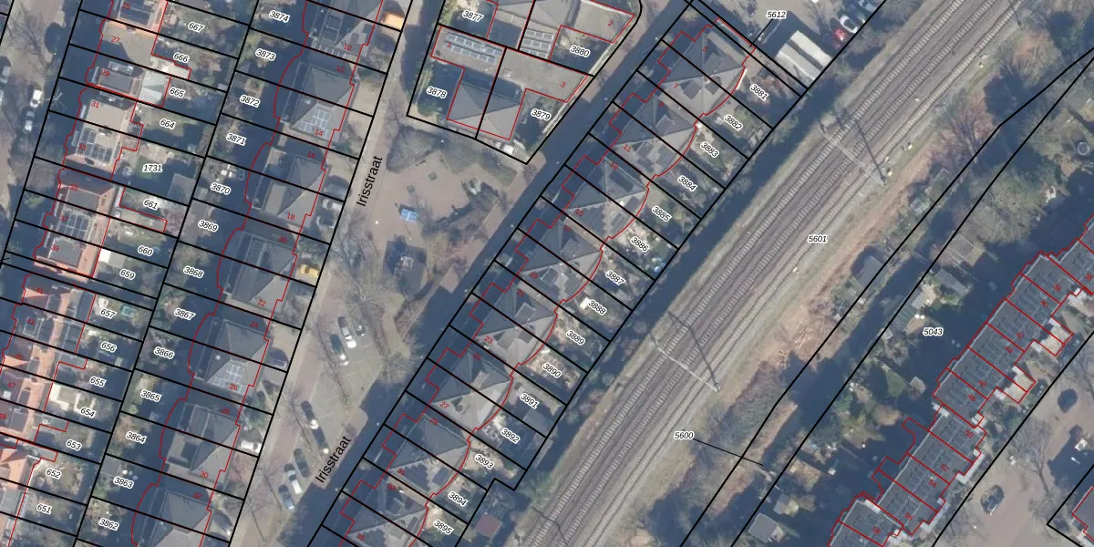 Het perceel waarop Irisstraat 19 staat heeft een oppervlakte van 184 m². Dit is een middelgroot perceel. De perceeloppervlakte wordt geregistreerd door het Kadaster. Gedetailleerde informatie over de maten van dit perceel kunt u vinden in het rapport Kadastrale kaart met maatvoering van Irisstraat 19.