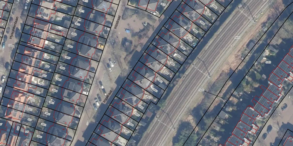 Het perceel waarop Irisstraat 25 staat heeft een oppervlakte van 185 m². Dit is een middelgroot perceel. De perceeloppervlakte wordt geregistreerd door het Kadaster. Gedetailleerde informatie over de maten van dit perceel kunt u vinden in het rapport Kadastrale kaart met maatvoering van Irisstraat 25.