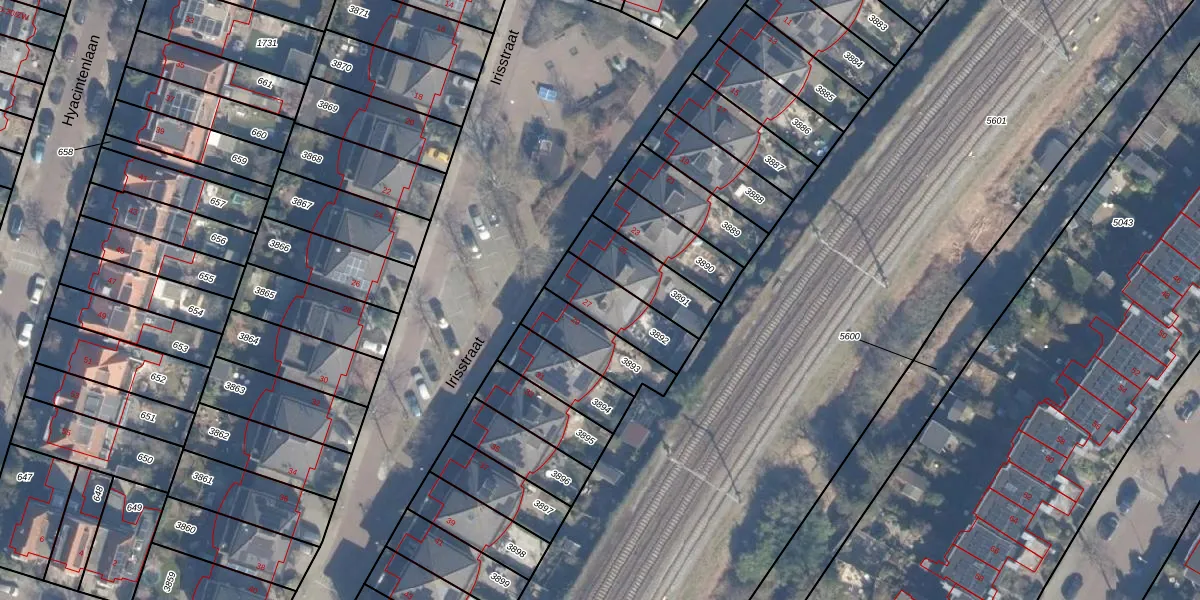 Het perceel waarop Irisstraat 27 staat heeft een oppervlakte van 186 m². Dit is een middelgroot perceel. De perceeloppervlakte wordt geregistreerd door het Kadaster. Gedetailleerde informatie over de maten van dit perceel kunt u vinden in het rapport Kadastrale kaart met maatvoering van Irisstraat 27.