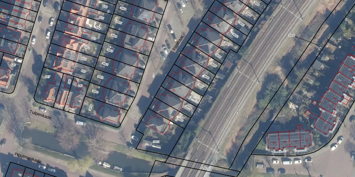 Irisstraat 39 is gelegen op kadastraal perceel HLM02T3898. Deze kadastrale aanduiding is uniek en wordt gebruikt door het Kadaster om eigendomsrechten en andere zakelijke rechten vast te leggen. Het perceel maakt onderdeel uit van de kadastrale gemeente Haarlem.