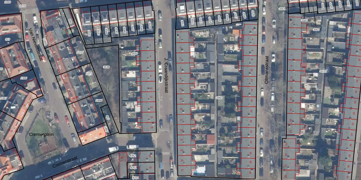 Het perceel waarop J. Craandijkstraat 11 staat heeft een oppervlakte van 3774 m². Dit is een zeer groot perceel. De perceeloppervlakte wordt geregistreerd door het Kadaster. Gedetailleerde informatie over de maten van dit perceel kunt u vinden in het rapport Kadastrale kaart met maatvoering van J. Craandijkstraat 11.