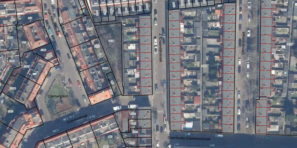 J. Craandijkstraat 14 is gelegen op kadastraal perceel HLM02P3550. Deze kadastrale aanduiding is uniek en wordt gebruikt door het Kadaster om eigendomsrechten en andere zakelijke rechten vast te leggen. Het perceel maakt onderdeel uit van de kadastrale gemeente Haarlem.