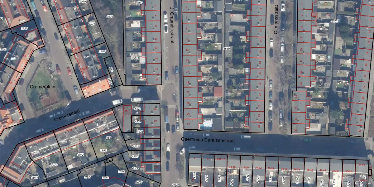 Het perceel waarop J. Craandijkstraat 21 staat heeft een oppervlakte van 3774 m². Dit is een zeer groot perceel. De perceeloppervlakte wordt geregistreerd door het Kadaster. Gedetailleerde informatie over de maten van dit perceel kunt u vinden in het rapport Kadastrale kaart met maatvoering van J. Craandijkstraat 21.