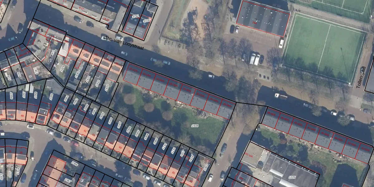 Het perceel waarop Jac. van Looystraat 30-I staat heeft een oppervlakte van 1848 m². Dit is een zeer groot perceel. De perceeloppervlakte wordt geregistreerd door het Kadaster. Gedetailleerde informatie over de maten van dit perceel kunt u vinden in het rapport Kadastrale kaart met maatvoering van Jac. van Looystraat 30-I.