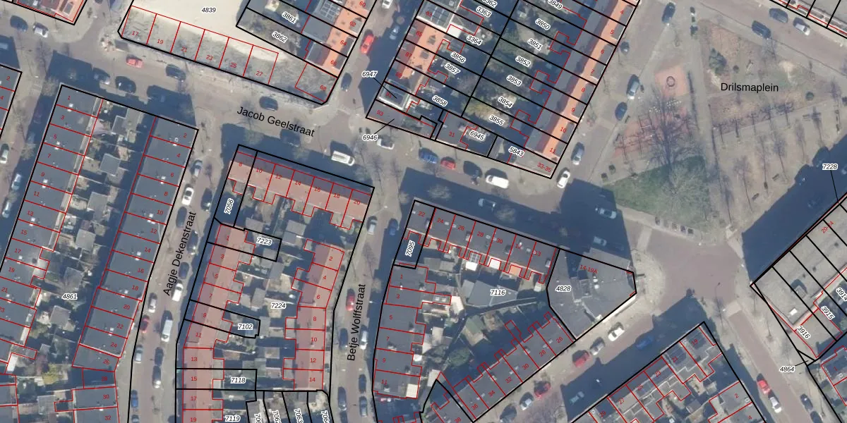 Het perceel waarop Jacob Geelstraat 22 staat heeft een oppervlakte van 80 m². Dit is een klein perceel. De perceeloppervlakte wordt geregistreerd door het Kadaster. Gedetailleerde informatie over de maten van dit perceel kunt u vinden in het rapport Kadastrale kaart met maatvoering van Jacob Geelstraat 22.
