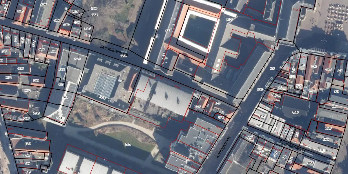 Het perceel waarop Jacobijnestraat 54 staat heeft een oppervlakte van 5275 m². Dit is een zeer groot perceel. De perceeloppervlakte wordt geregistreerd door het Kadaster. Gedetailleerde informatie over de maten van dit perceel kunt u vinden in het rapport Kadastrale kaart met maatvoering van Jacobijnestraat 54.