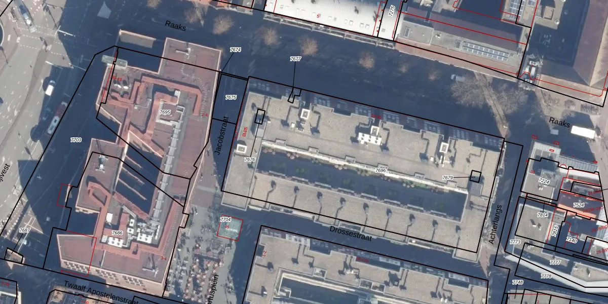 Het perceel waarop Jacobstraat 67 staat heeft een oppervlakte van 3301 m². Dit is een zeer groot perceel. De perceeloppervlakte wordt geregistreerd door het Kadaster. Gedetailleerde informatie over de maten van dit perceel kunt u vinden in het rapport Kadastrale kaart met maatvoering van Jacobstraat 67.
