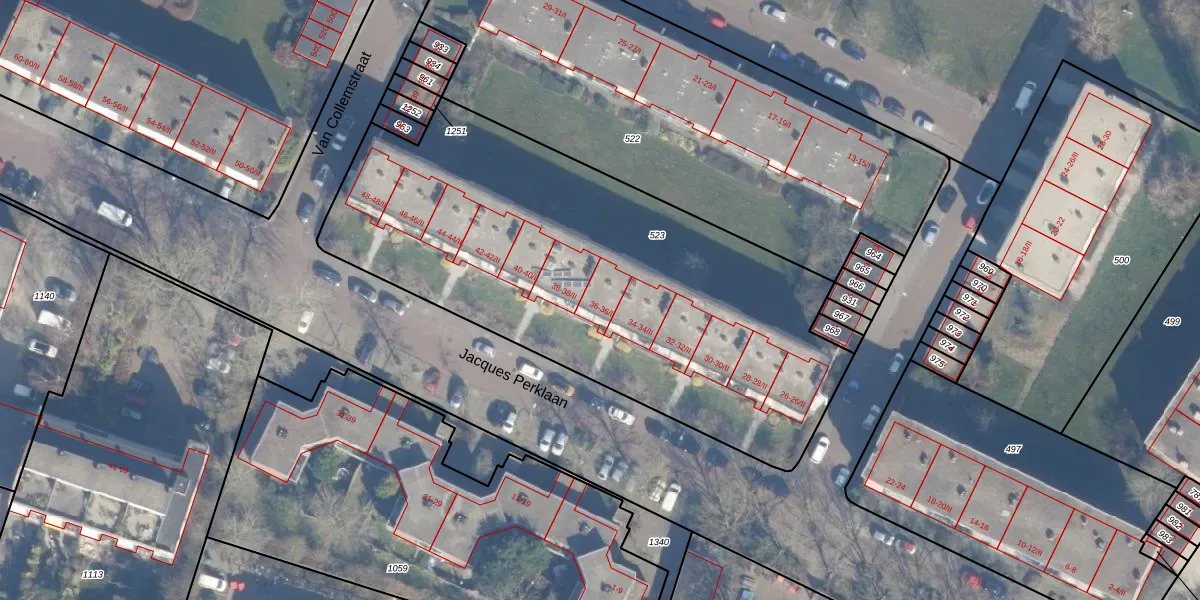 Het perceel waarop Jacques Perklaan 36-I staat heeft een oppervlakte van 2725 m². Dit is een zeer groot perceel. De perceeloppervlakte wordt geregistreerd door het Kadaster. Gedetailleerde informatie over de maten van dit perceel kunt u vinden in het rapport Kadastrale kaart met maatvoering van Jacques Perklaan 36-I.