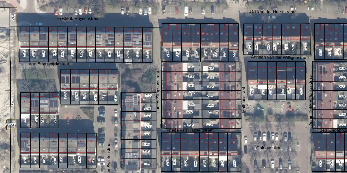 Gebruik de zoekbalk of klik op een perceel voor informatie over de adressen binnen dit perceel.